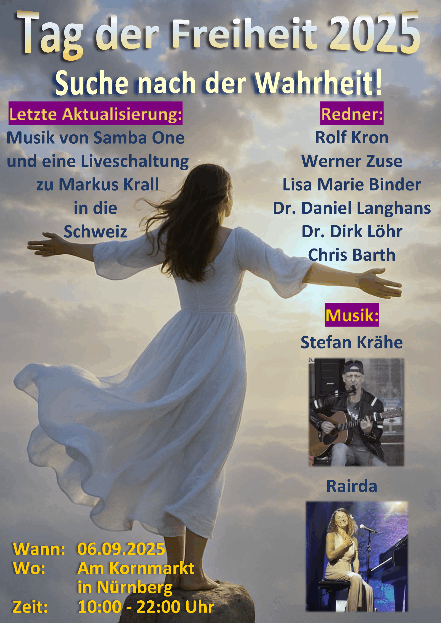 Der Veranstaltungsort – der Kornmarkt an der Straße der Menschenrechte – unterstreicht dabei die symbolische Kraft unseres Anliegens: Eine Gesellschaft, die nicht nur Freiheit fordert, sondern im Miteinander vieler unterschiedlicher Meinungen lebt.